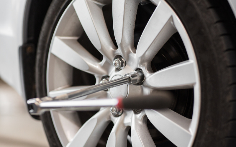 - Loosen the wheel nuts - Turn the wheel wrench anti-clockwise and loosen the nuts to a point where they can be turned by hand (this is easier and safer to do whilst the car is on the ground).