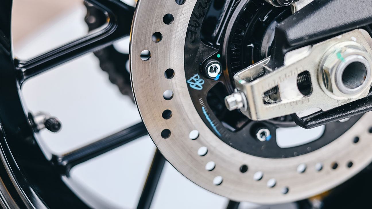 Choose an impressive 320mm diameter double disc coupled with Brembo M 4.32B monobloc four piston calipers take care of the front wheel. A 245mm disc with a single piston caliper reinforces from the rear.