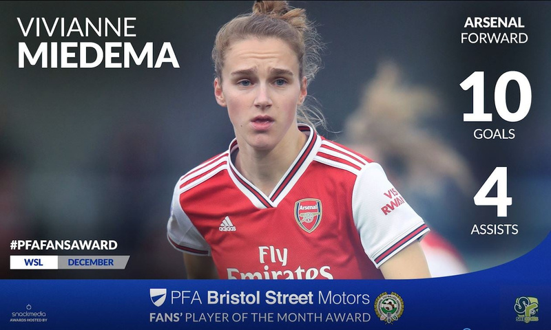 Vivanne Miedema has been voted the PFA Bristol Street Motors Fans WSL Player of the month for December.