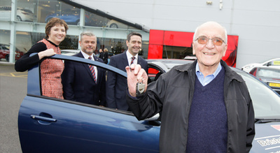 A great grandfather has collected the keys to a car from Bristol Street Motors after taking part in a raffle which raised more than £40,000 for St Oswald's Hospice based in Newcastle.