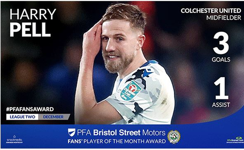Harry Pell has been voted the PFA Bristol Street Motors Fans League Two Player of the month for December.