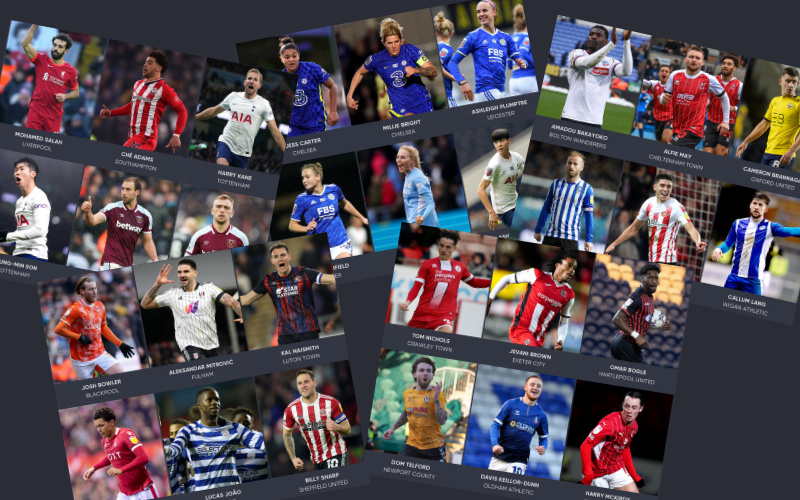 Six players from each of the top five professional leagues in England have been shortlisted for their exceptional performances on the pitch last month. Fans across the country now have the power to decide who wins...