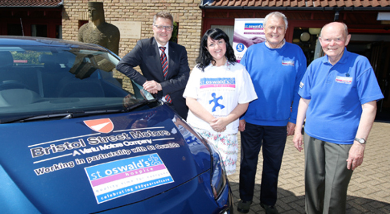 Bristol Street Motors dealerships in Hexham, Sunderland and Newcastle have banded together to donate a brand new Vauxhall Corsa, which will be used to tour the region promoting the raffle before a lucky winner is drawn. Proceeds from the raffle will go towards St Oswald s annual fundraising target of £7 million, which must be raised through voluntary giving.