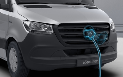 ^Electrical WLTP range for the eSprinter in miles (Km): combined 83 (134) ? 110 (178). Electrical consumption in kWh/100 km: combined 30.6 - 50.6; CO2 emissions in g/km (combined): 0. Figures correct as of 01/08/2020. For real time data visit https://voc.i.daimler.com/voc/gb_en.