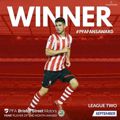 In a vote run by fan engagement experts, Snack Media, the midfielder won a tight contest - he received 28% of the vote for September with teammate, Jason Shackell, taking second place.