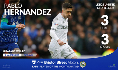Pablo Hernandez has been voted the Championship PFA Bristol Street Motors Player of the Month for June/July by football fans across the country.