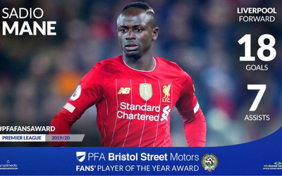 Sadio Mane has been voted the Premier League PFA Bristol Street Motors Fans Player of the Year for 2019/20 by football fans across the country.