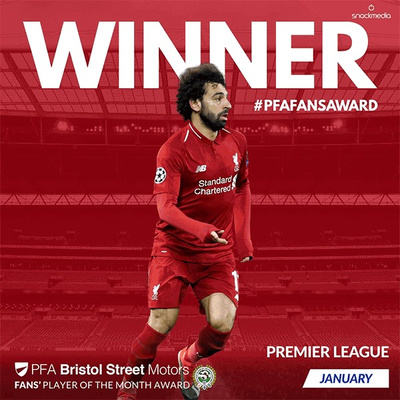 Mohamed Salah has been voted the first PFA Bristol Street Motors Fans Player of the Month of 2019 by football fans across the country.