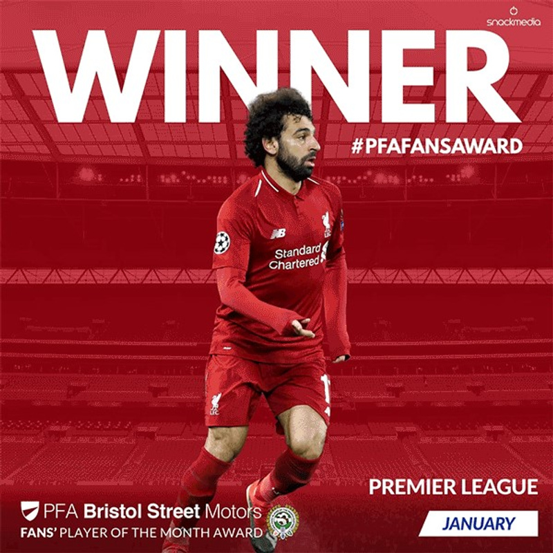 In the first of four divisional votes carried out over seven days via Snack s digital and social networks and supported by top flight football clubs and press, it was clear that Salah s strong performances last month - in which he scored three goals in four games- has resonated not just with Reds fans, but with supporters of teams up and down the country.