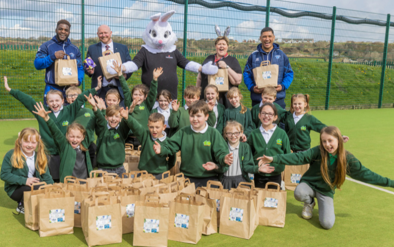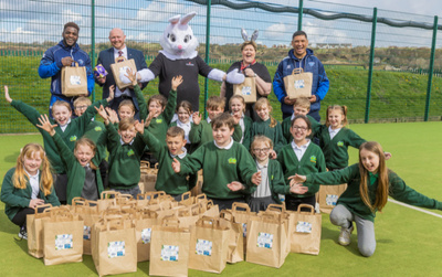 Bristol Street Motors Halifax Nissan has handed out Easter Eggs to every child at Ash Green Community School, which saw four classrooms destroyed following a serious arson attack in February.