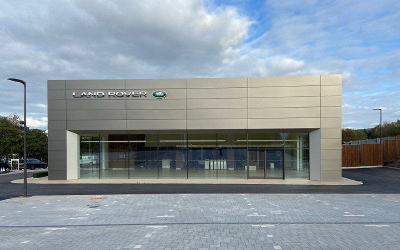 The completed site features a six vehicle showroom displaying the full Land Rover range, approved-used car display in extended outdoor forecourt, a dedicated handover area, barista bar and a personalisation area where customers are able to adapt the specification and features of their new vehicle.