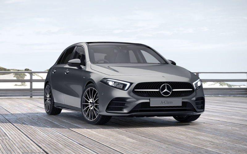Choosing A-Class Exclusive Edition Plus adds Designo Mountain Grey Magno paint, a 10.25-inch digital instrument display, illuminated door sills, KEYLESS-GO, a rear arm rest, MULTIBEAM LED headlights with Adaptive Highbeam Assist, Mercedes's Augmented Navigation system, an Advanced Sound System, front memory seats and 19-inch AMG cross-spoke light-alloy wheels painted in black.