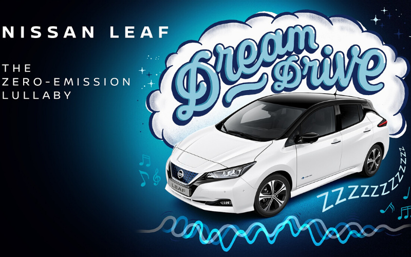 Nissan has collaborated with Tom Middleton, who is a Sound Designer and Sleep Coach to dream up the perfect solution to allow parents to still use their EV to send children to sleep. The lullaby blends sounds of the Nissan LEAF with frequencies produced by a humming combustion engine to create a hypnotic soundscape to help send young children to sleep in the car.