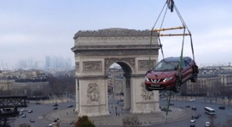As part of the event, a Qashqai was crane-lifted onto a roof looking out towards the Arc de Triomphe and the Champs Elysees.