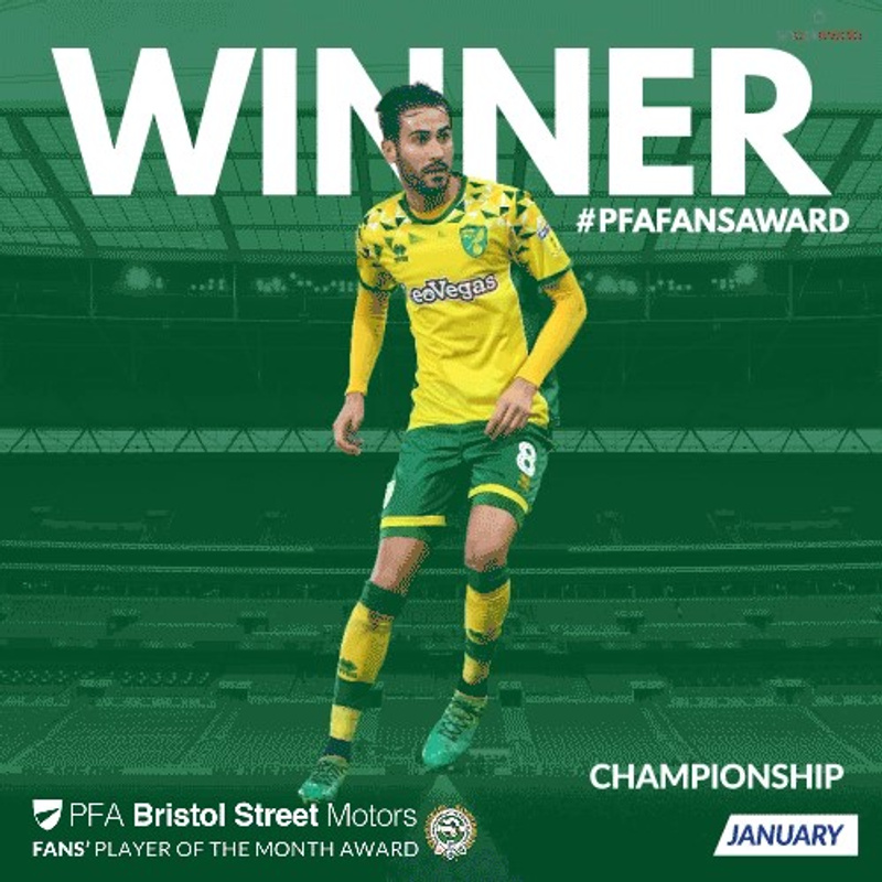 In a vote run by fan engagement experts, Snack Media, the Canaries star won with 45% of the vote, with Hull City s Jarrod Bowen coming in second place.