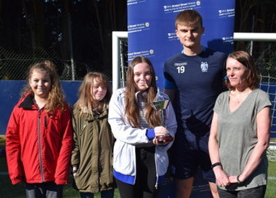 Lorraine Fox, who is Vice Chair of the Forever Bury FC Supporters Trust, presented George Miller with the coveted PFA fan award. Lorraine has been going to matches since the age of four and has carried on the tradition with both of her daughters, Amie and Xara. She has been taking them to the Gigg Lane stadium to see games since they were young children.