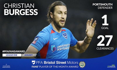 Burgess has been voted the League One PFA Bristol Street Motors Fans Player of the Month by football fans across the country.