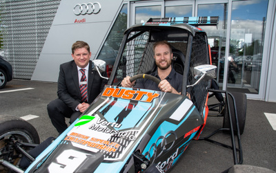 Hereford Audi is supporting the racing career of one of its technicians with a sponsorship package that will help him compete in the British Superlite Championship.