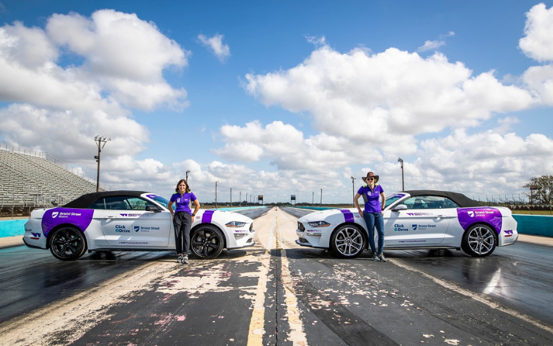 The additional challenge saw W Series 2021 champion, Jamie Chadwick, and her biggest rival this year, Alice Powell, driving Ford Mustang racing cars, branded with the Bristol Street Motors and Click2Drive logos.