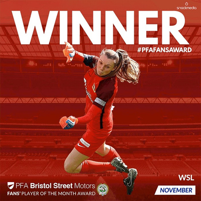 Yeovil Town Ladies FC goalkeeper Megan Walsh has been voted the November Women s PFA Bristol Street Motors Fans Player of the Month by football fans across the country.