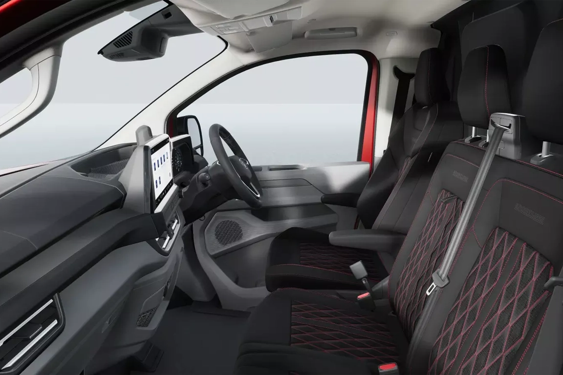 The next evolution of Volkswagen’s iconic van arrives with the new Transporter Sportline. This range-topping specification transforms the trusty Transporter into a bold, performance-inspired statement. Designed for drivers who want their van to stand out from the others and work hard while doing it, the Sportline introduces exclusive exterior enhancements including bespoke front and rear bumpers, a gloss black grille and mirror caps. The distinctive 19-inch alloy wheels and lowered suspension set up that creates a powerful presence on the road.